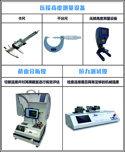 如果您需要檢測(cè)任何特殊的壓接端子是否符合行業(yè)的規(guī)范,請(qǐng)使用廣州格律電子的實(shí)驗(yàn)室設(shè)備對(duì)其進(jìn)行質(zhì)量檢測(cè):截面分析儀、拉力測(cè)試儀、壓接高度測(cè)量裝置以及專用的質(zhì)量測(cè)量軟件等。